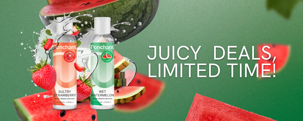 Penchant Wet Watermelon lube 4oz bottle and packaging, water-based personal lubricant with sweet watermelon flavor